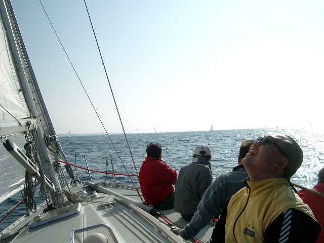 舵持ちは悲しい、私はまわりも見ずにずっとマストトップの風見とにらめっこ、皆が話す、周囲の舟の状況を