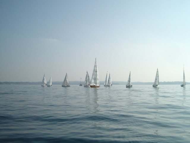 10時40分スタート、風無し、10分前にスタートした舟と団子状態。