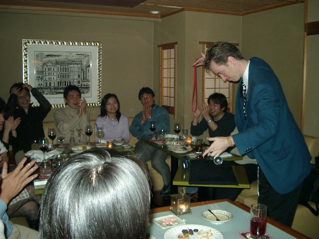 二次会はJIPの中道さんの紹介で、赤坂の夜の町中から突然ネオンの消える浄土寺の参道を途中から右に曲がった 奥にある「USAGIYA」に連れて行ってもらいました。美味しいカクテル、ワインと楽しいMagicショウで、 素敵な時間でありました。(中道さん感謝)